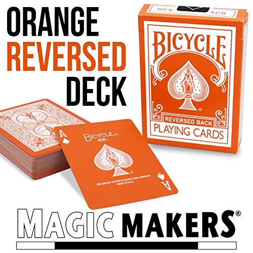 Magic Makers Orange Reversed Deck Bicycle Playing Cards - Includes Extra Magic Trick Cards