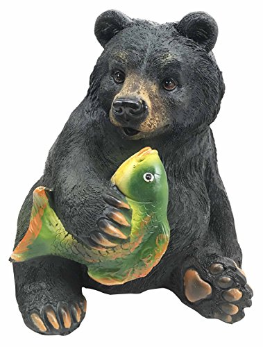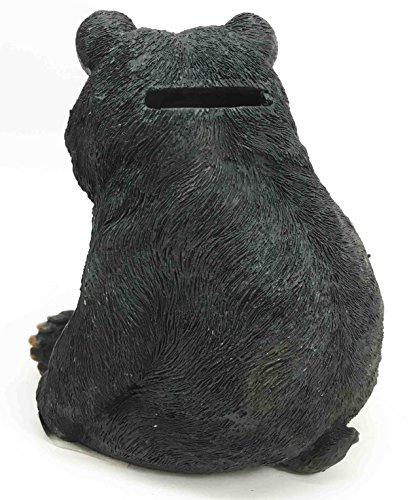 Wildlife Rustic Adorable Honey Black Bear Catching River Fish Money Coin Bank Figurine Statue Great Gift For Nature Lovers Children Forest Collectible Decor
