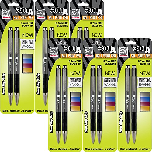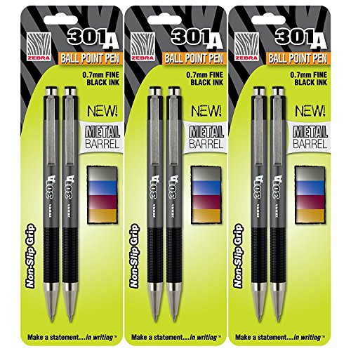 -. Binding : Office Product -. Brand : Zebra Pen -. Color : Blue -. Feature : Stylish blue metal barrel that provides durability and a lasting impression / Traditional stainless steel pocket clip that won't break or wear down over time. / Non-slip gripping to provide a more stable writing experience / Writing standard 0.7mm fine point tip. / Fully refillable with Zebra's F-refill -. Label : Zebra Pen -. Manufacturer : Zebra Pen -. MPN : 27522 -. PartNumber : 27522 -. ProductGroup : Office Product -. ProductTypeName : WRITING_INSTRUMENT -. Publisher : Zebra Pen -. Studio : Zebra Pen -. Title : Zebra 301A Retractable Ballpoint Pen, Fine Point 0.7mm, Black Ink