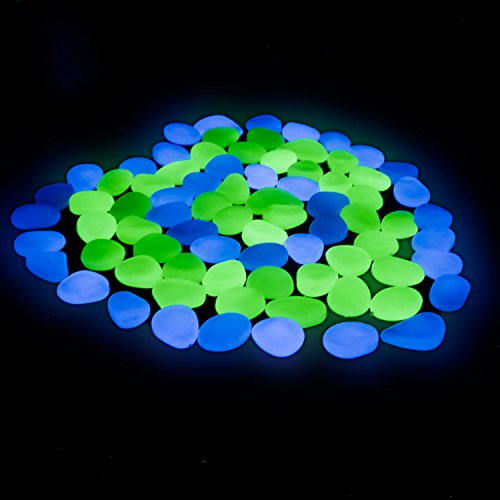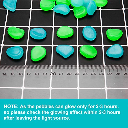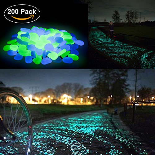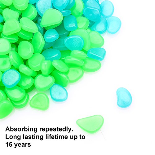 PROMENE 200pcs Glow in the Dark Garden Pebbles, Green and Blue for Walkway Yard and Decor DIY Decorative Gravel Stones (200PCS)