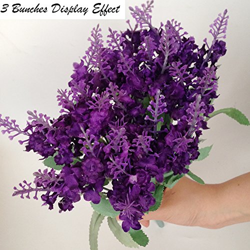 Meiliy 3 Bunches Fake Floral Provence Lavender Silk Flower Artificial Flower Home Hotel Office Wedding Party Garden Craft Art Decor 12.5 Inch Dark Purple ML-006dp
