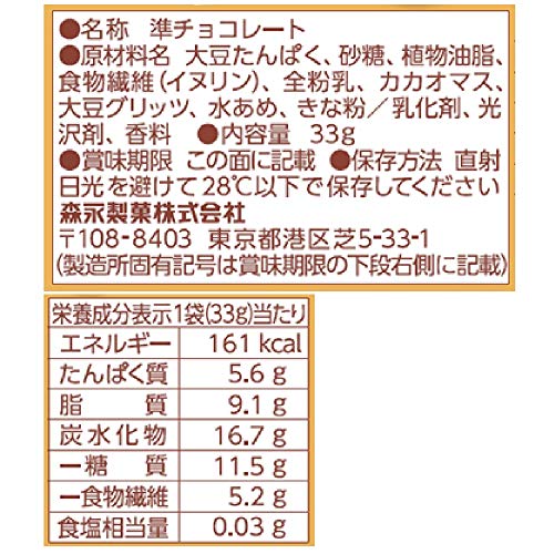 原材料:大豆たんぱく、砂糖、植物油脂、食物繊維(イヌリン)、全粉乳、カカオマス、大豆グリッツ、水あめ、きな粉/乳化剤、光沢剤、香料