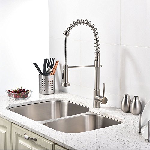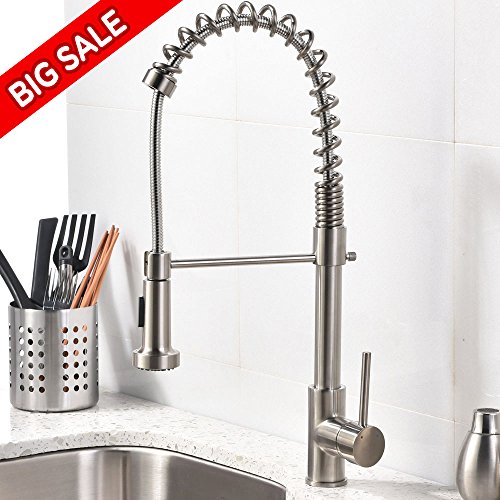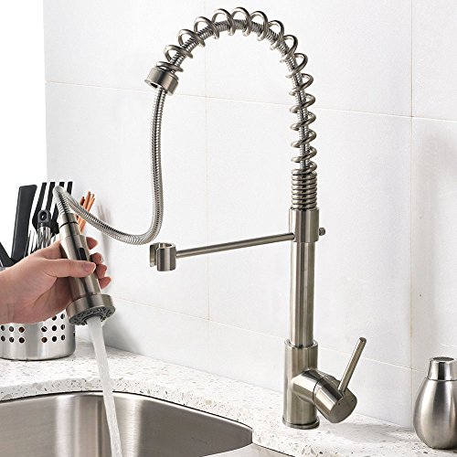 VCCUCINE Modern Commercial Spring Brushed Nickel Pull Out Sprayer Single Handle Kitchen Faucet, Single Lever Pull Down Kitchen Sink Faucets