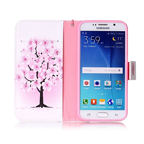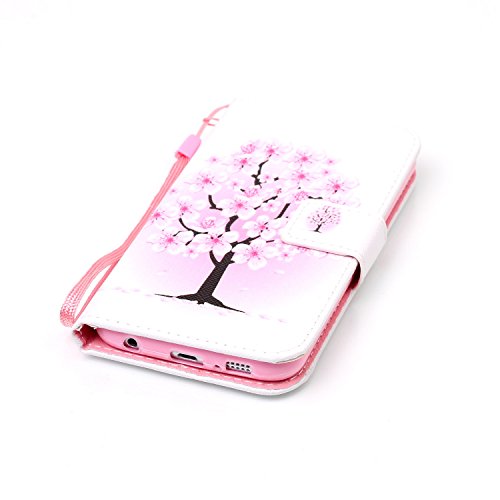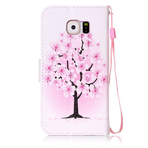 Galaxy S6 Case,Galaxy S6 Cover,ikasus Colorful Art Painted PU Leather Fold Flip Wallet Case Cover Stand Card Slots Protective Case Cover for Samsung Galaxy S6,White Pink Cherry Blossoms