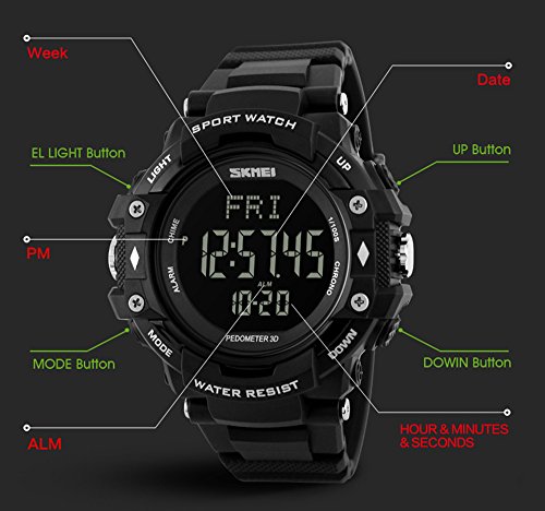 -. Title : Gosasa Men 3D Pedometer Heart Rate Monitor Calories Counter Fitness Tracker Digital Display Watch Outdoor Sports Watches Blue