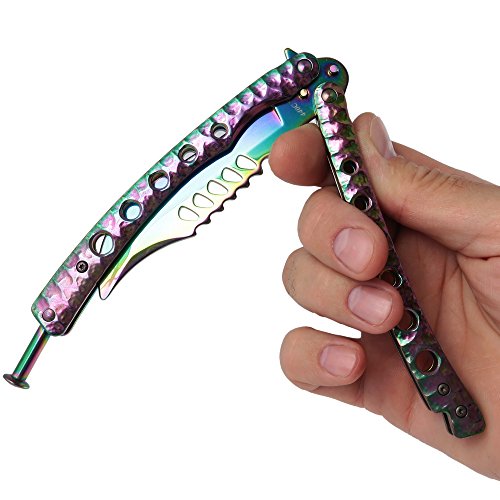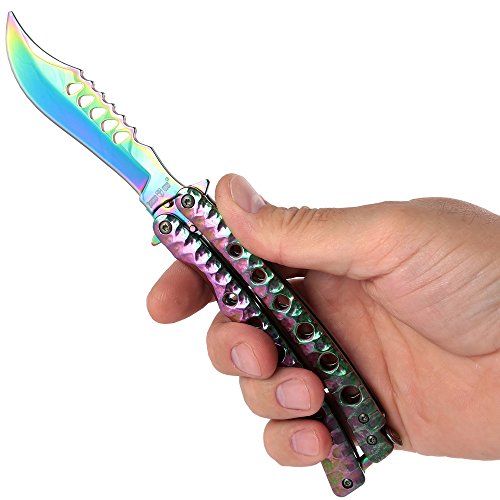 Butterfly Knife Trainer Practice Balisong Rainbow Steel Unsharpened Knife - Grand Way K08