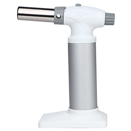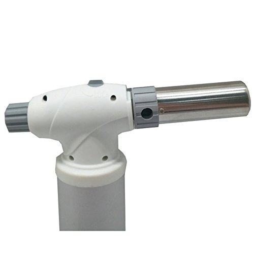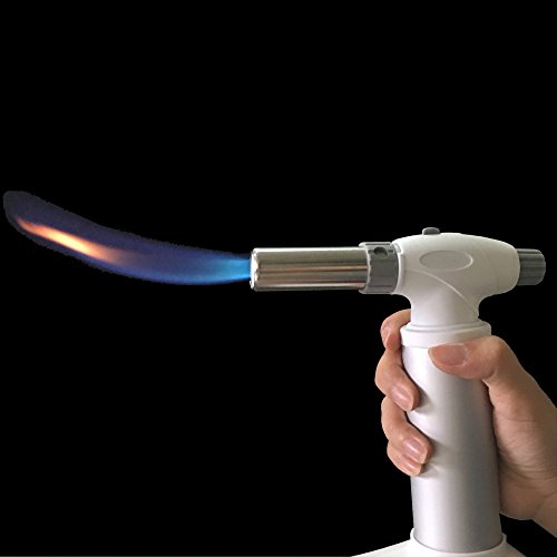 HASSLE FREE USING & ENDLESS CREATIONS EVEN FOR AMATEURS: This cute cooking blow torch, lights in with just one click and facilitates the glazing process to the fullest! Ideal for Crème Brûlées, searing tomato skins, melting cheese, glazing ribs, lighting a campfire, your cigars and more. Thanks to its high burning temperature, you can use it for soldering, jewelry making and welding as well. BUTANE NOT INCLUDED