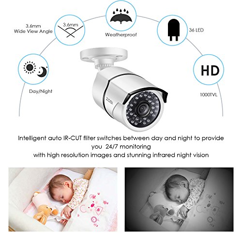 -. Title : ZOSI 4 Pack HD 960H 1000TVL Security Camera 1/3" Color CMOS 36 IR-LEDs Day/Night Weatherproof Surveillance Bullet Camera Night Vision 100ft(30m)