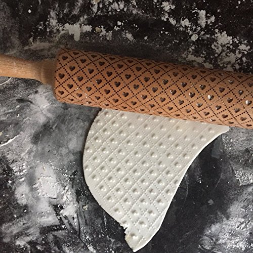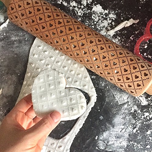Engraved Love Hearts Pattern Rolling Pin for Cookies Patterned Embossed Wood for Cookie Baking Kitchen Gift