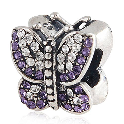 Material: 100% authentic 925 sterling silver sparkling butterfly charms with clear and purple Australian crystal,delicate handicraft and perfect processing,quality assured.