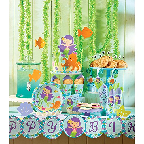 - Look for Mermaid Friends tableware and decor and coordinating Touch of Color solids Fresh Lime and Luscious Lavender