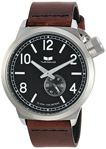 Vestal Quartz Stainless Steel and Leather Dress Watch, Color:Brown (Model: CNT453L01.CVBK)