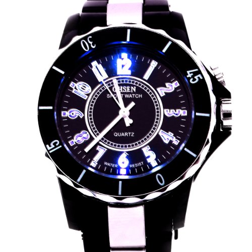 Ohsen A056 Water Resist Men Women Quartz Sports Wrist Watch 7 Colour LED Light Watch - Black (58041)