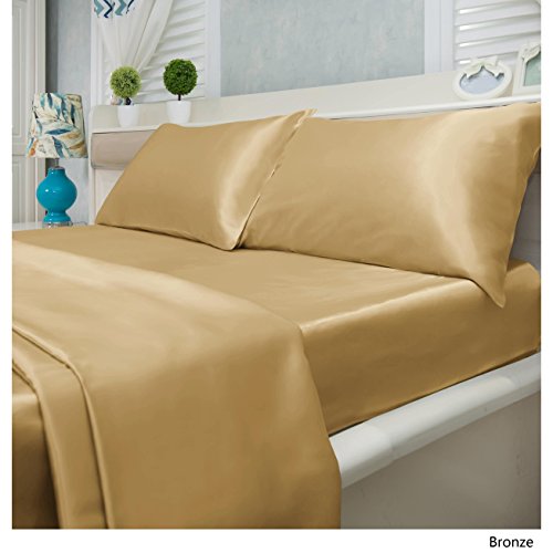 Verno Super Soft Deep Pocket 4-Piece Satin Sheet Set Coffee 4 Piece Full