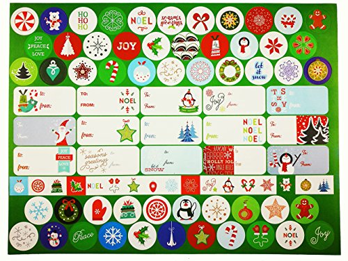 Ouchan 206 Christmas Gift Stickers Holiday Labels Personalized Tags Adhesive 5 Sheet and Designs