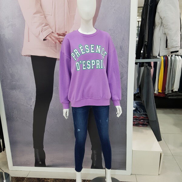 여성용 맨투맨 디셔츠 입니다.기본스타일의 티셔츠로 영문자 포인트가 캐쥬얼함을 더해주며 데님이나 치노팬츠와도 잘 어울리는 스타일 입니다.