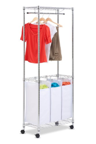 Honey-Can-Do SRT-01154 Urban Rolling Laundry Center, Chrome, Triple-Sorter