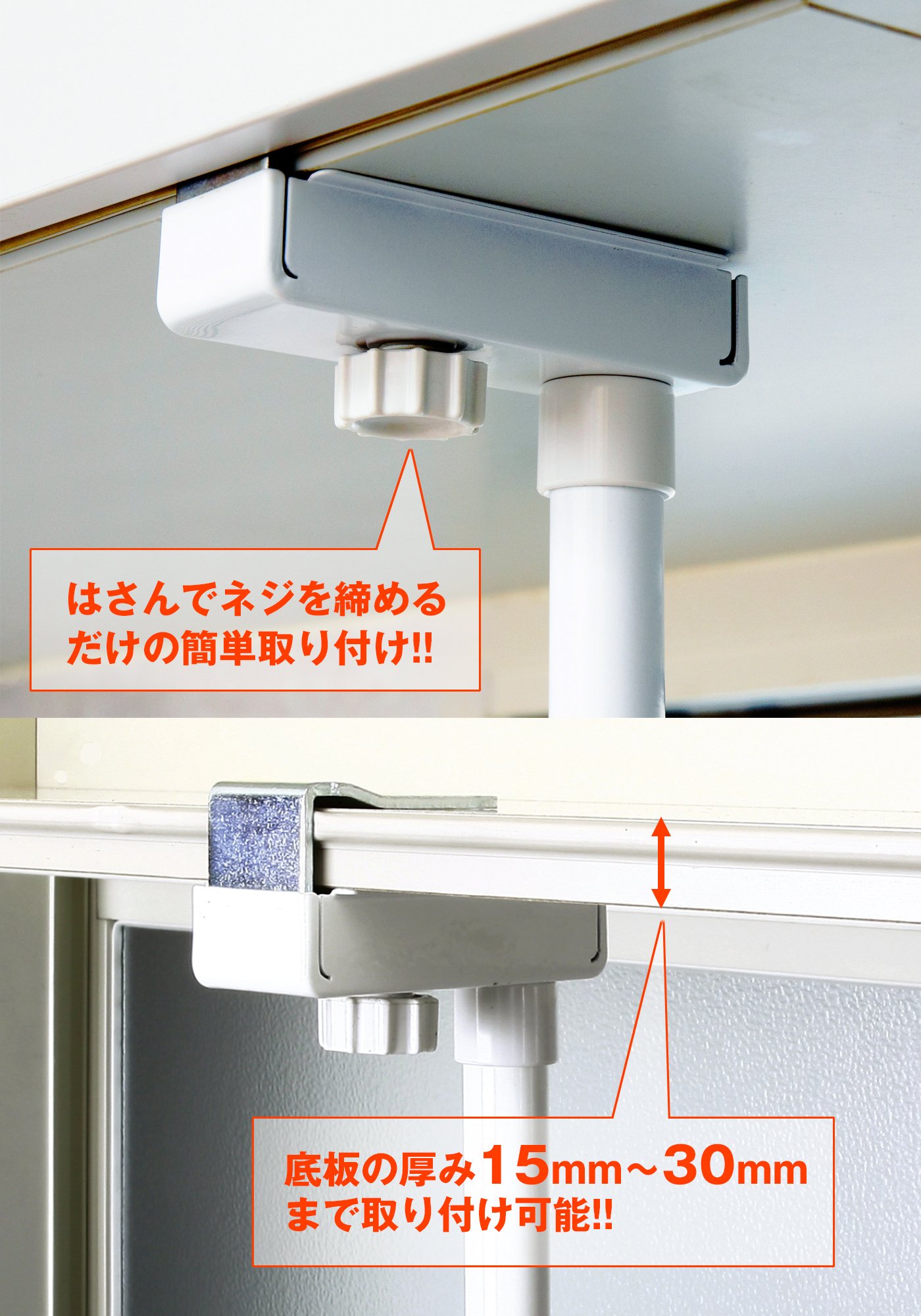 ● Easy installation on existing hanging shelves (Easy installation by pinched in the bottom plate)