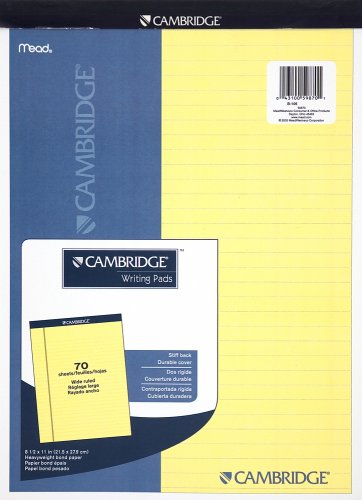 Mead Cambridge Stiff-Back Pad, Wide Ruled, 8.5 x 11 Inches, Canary, 70 Sheets per Pad, 12 Pads per Pack (59870)