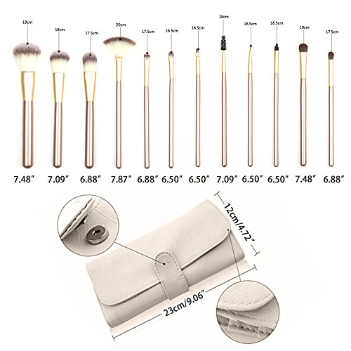 -. Feature : Makeup Brush Set: High quality of fiber hair,soft and comfortable for makeup .In great condition and brush hair don't fall out at all.Soft and will not bring any damage to your tender skin.Designed with champagne wooden handle ,connected with brush hair steady and durable. / Face Brush Kabuki Brush:Cosmetic brush set meet all your basic need on makeup .Used to blending with foundation cream,blush,powder,loose powder,contour powder ,eyeshadow,lip ,eyeliner,eyebrow powder.Naturally docile and evenly on makeup,give you a flawless face and eye makeup application. / Portable Makeup Contouring Blending Brush Sets:Professional makeup brushes set full of 12 pcs cosmetic brush , meet your basic need on daily life .Gorgeous white soft leather bag, easy to collect and carry brushes.Portable and Essential cosmetic set for makeup learner on daily life or professional usage on salon . / Professional Travel Brush Set:High quality travel makeup pouch designed for protecting, storing and assorting all brushes.Silky soft, smooth hair brushes designed for makeup artists and professional cosmetic use but also for amateurs / Product Details: Material:Brush hair:Fiber wool ;Handle:wood;Bag:PU leather. Size:total lenth :19cm Color :Champagne Package:1 x Fan brush ;1xPowder brush;1xSponge shadow brush;1xAngled brush;1xEyebrow brush;1xTapered blending brush;1xLiner brush;1xShadow brush;1xSmall shadow brush;1xDetail concealer brush;1xMedium concealer brush;1xEyeshadow brush;1xLeather bag,1x makeup sponge;100% SATISFACTION & MONEY BACK GUARANTEE:60 days refund and resend guarantee.