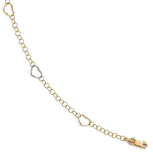 -. Binding : Jewelry -. Brand : The Black Bow -. Color : Yellow -. Department : womens -. Feature : Two tone 14k yellow and white gold / Approximate width 6mm / Adjustable 9 to 10 inch length / Average item weight is 1.68 grams / Includes our custom gift box -. Label : The Black Bow -. Manufacturer : The Black Bow -. Model : A8682 -. MPN : A8682 -. NumberOfItems : 1 -. PackageQuantity : 1 -. PartNumber : A8682 -. ProductGroup : Jewelry -. ProductTypeName : FINENECKLACEBRACELETANKLET -. Publisher : The Black Bow -. Studio : The Black Bow -. Title : 14K Two Tone Gold Open Heart Link Station Anklet, 9-10 Inch