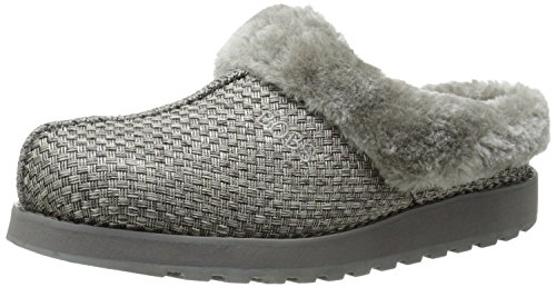 Easy slip on construction. Signature logo embroidered detail at top. Plush faux fur trim and lining. Faux fur memory foam insole. Shock absorbing midsole. Man made outsole. Imported.Feature