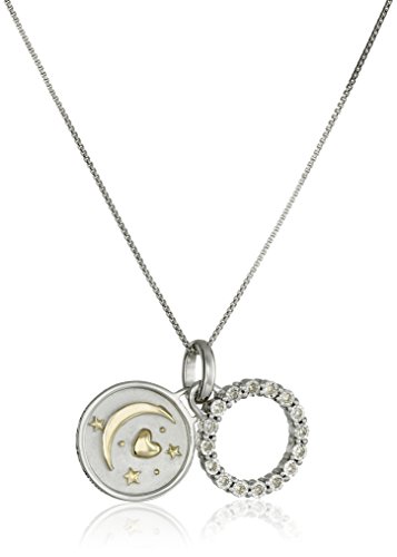 Two-Tone Sterling Silver and Yellow Gold Plated Two Piece Circle with Moon and Stars "I Love you to the Moon and Back" Pendant Necklace (1/10cttw, I-J Color, I2-I3 Clarity), 18"