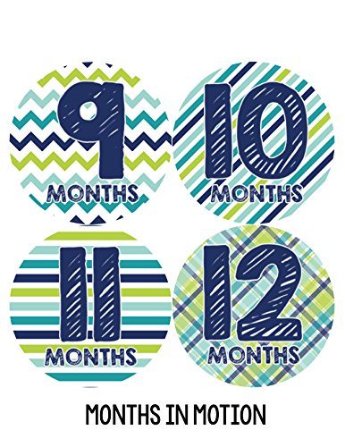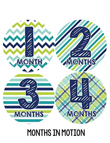 Months in Motion 003 Monthly Baby Stickers - Baby Boy - Months 1-12 - Milestone Sticker