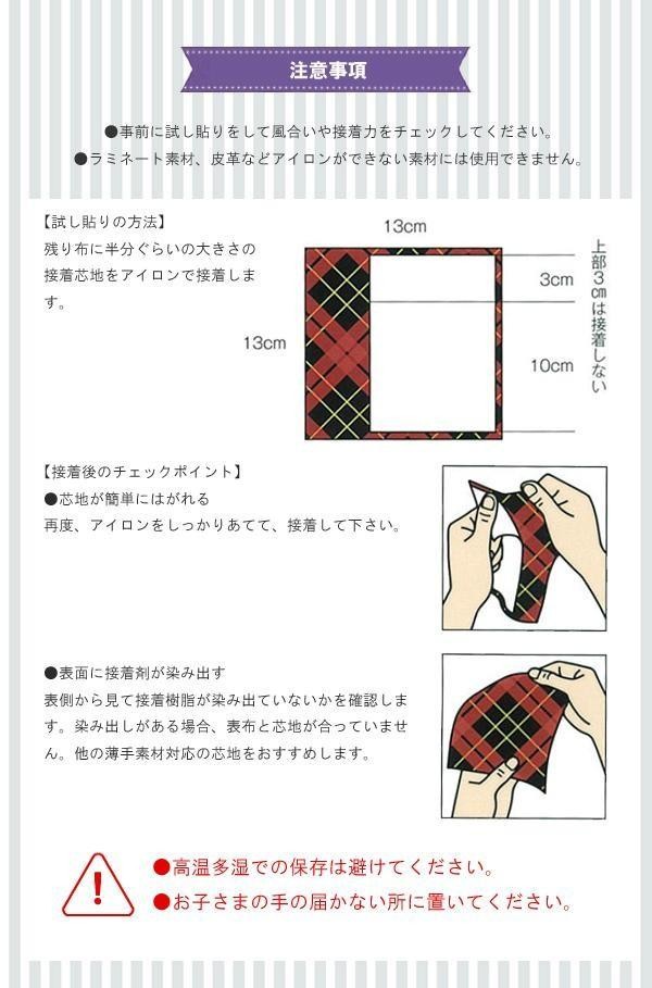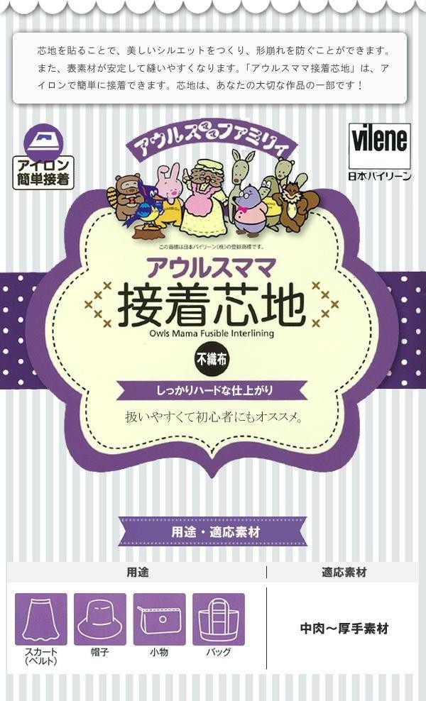 | ハリ・コシ感のあるしっかりとした風合いの不織布芯地です。バッグや帽子など形をしっかりと保ちます。寸法安定性に優れた不織布芯地は、はじめての方にもおすすめです。 |