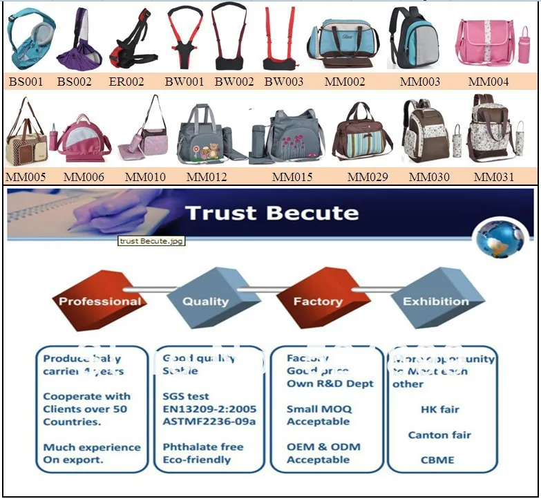 Accessories:changing pad,bottle bag,baby bag