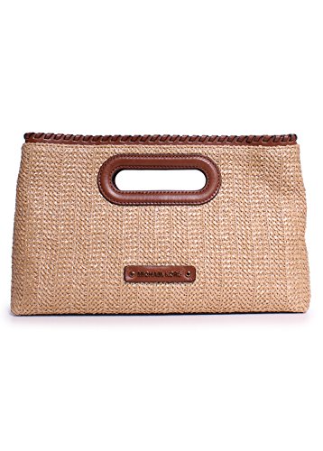 -. Feature : Summery straw-woven clutch. Whipstitched leather detailing. Cutout handles with leather trim. / Magnetic snap closure. Logo-jacquard lining. Interior zip pocket, eight card slots. / Option crossbody strap with 25" drop. / Color: Walnut / Gold Hardware / H: 7.75 in x W: 2.00 in x L: 12.00 in 25