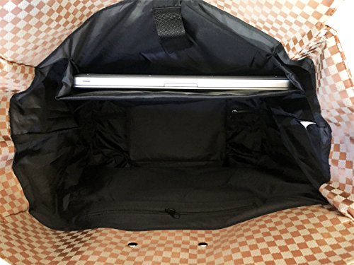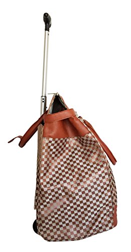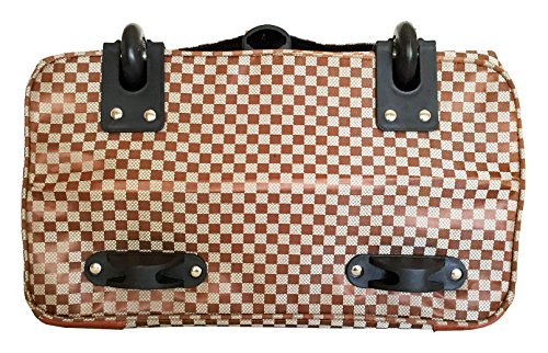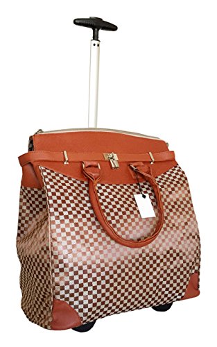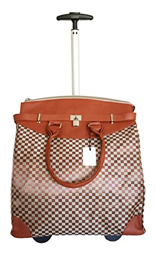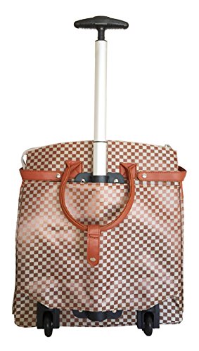 -. Binding : Electronics -. Brand : Trendy Flyer -. Color : Beige, Burnt Orange -. Department : laptop-computer-briefcases -. EAN : 0746839981966 -. Feature : Color: Beige, Black, and Bunt Orange / Padded laptop area can fit laptop 12.5" wide, 10" tall and 3" thick using securing velcro strap/Padded laptop area can fit laptop 12.5" wide, 14" tall and 3" thick without using securing velcro strap / Material: Polyester Canvas with Polyurethane Trim / Pattern: Checkers / Size: 17.5" H x 16.5" L x 9" W / Weight: 4.5 lbs / Additional Info: Height From Top of Handle to Floor with Handle Fully Extended: 36" -. PackageQuantity : 1 -. ProductGroup : PC Accessory -. ProductTypeName : CARRYING_CASE_OR_BAG -. Title : Trendy Flyer Computer/Laptop Rolling Bag 2 Wheel Case M Checkers -. UPC : 746839981966