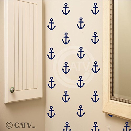 Anchors wall pattern vinyl lettering nautical sticker decal (Navy, 4x2.75 set of 40)