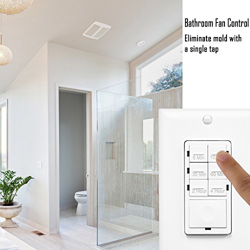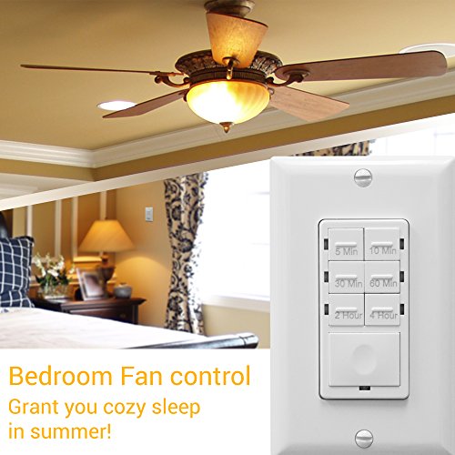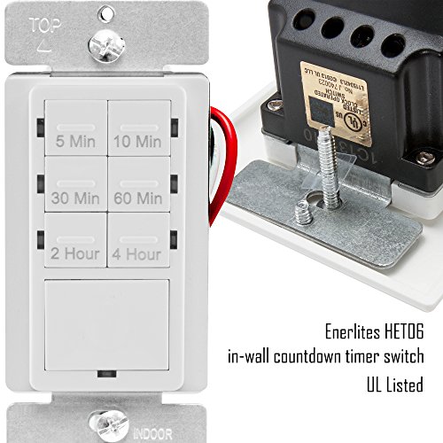 Enerlites HET06-W Countdown Timer Switch, Fan Switch Timer, Timer Switch for Lights, Bathroom Timer Switch, Wall Switch Timer , 5 min–4 hrs
