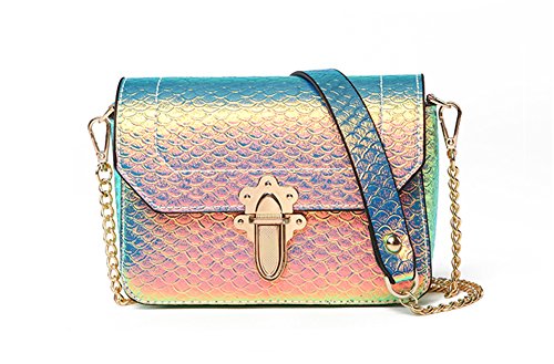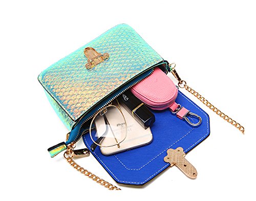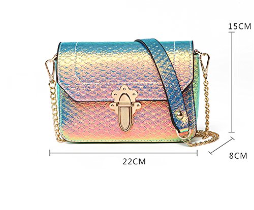 Hologram Crossbody Purse Mermaid Scales Shoulder Bag with 2 Chains for Women