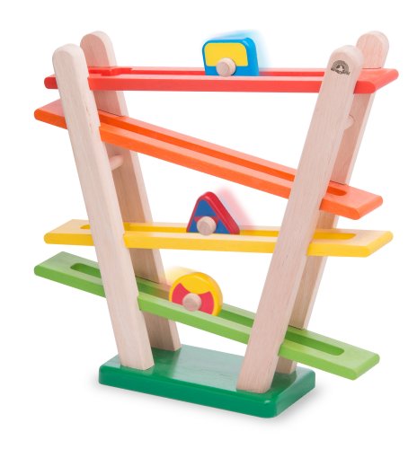 The beautifully designed Rainbow Roller will bring hours of enjoyment and entertainment to children by placing 3 different color and shape wheels on the adjustable track. The colorful wheels create different sounds and patterns when rolling down the track from top to bottom.