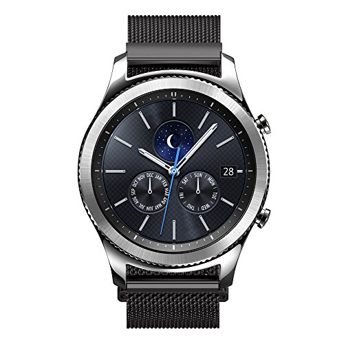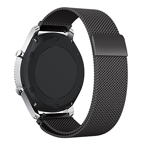 Gear S3 Watch Band, Leefrei Milanese Loop Woven Stainless Steel Mesh with Magnetic Closure Clasp Replacement Strap for Samsung Gear S3 Frontier and Classic Smart Watch - Black