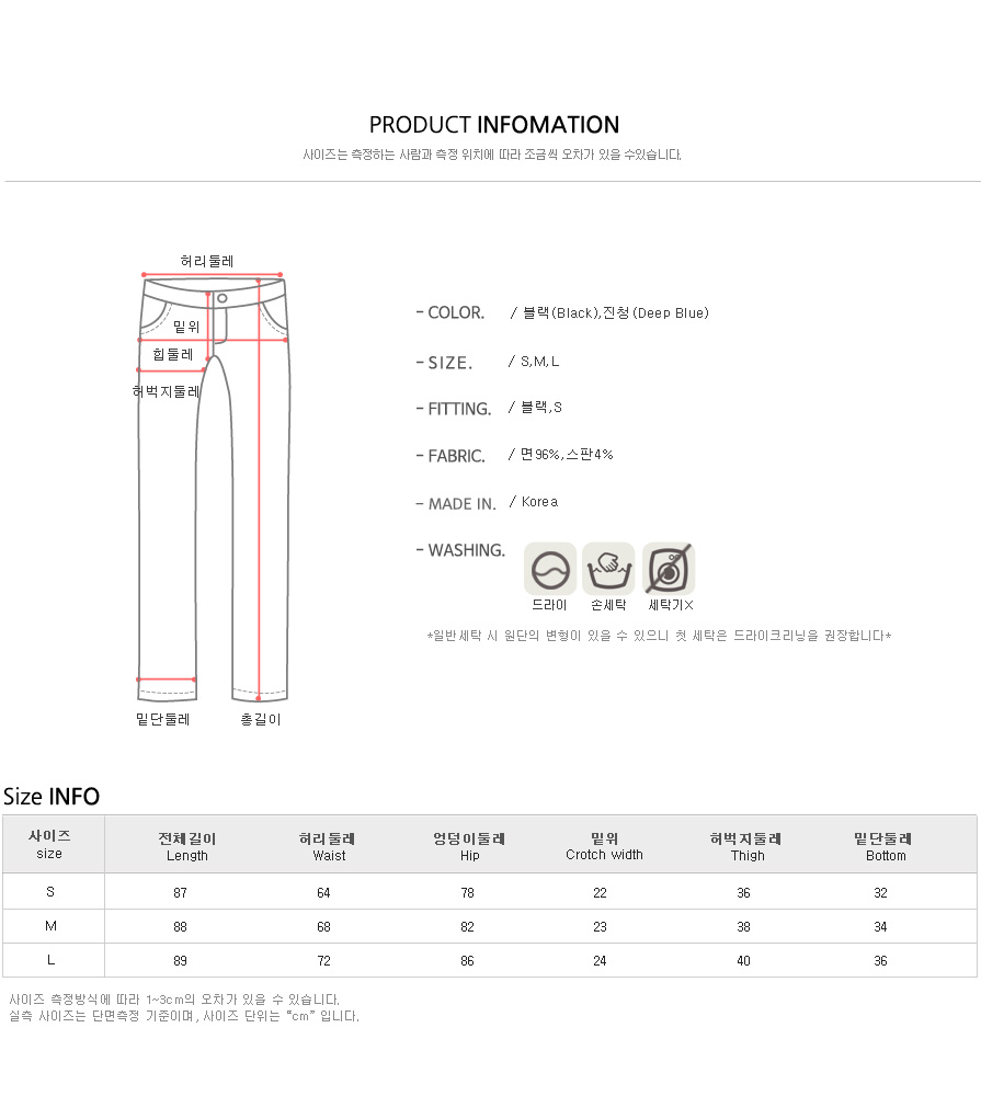 컬러는 블랙,진청 2컬러에 S,M,L 사이즈 준비했어요