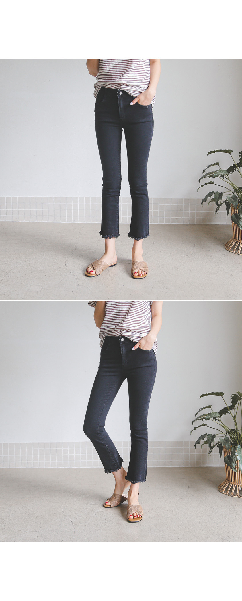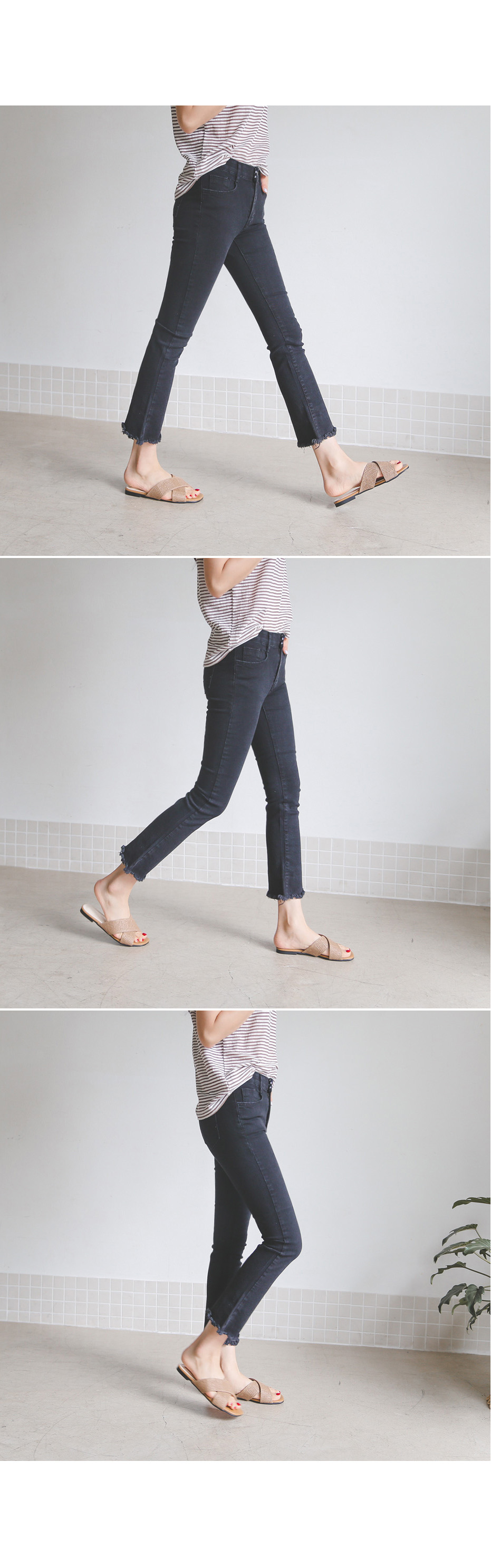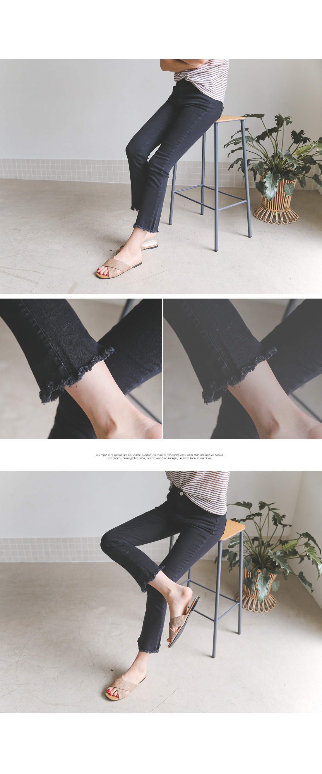 밑단에 수술컷팅으로 자연스러운 올 풀림을