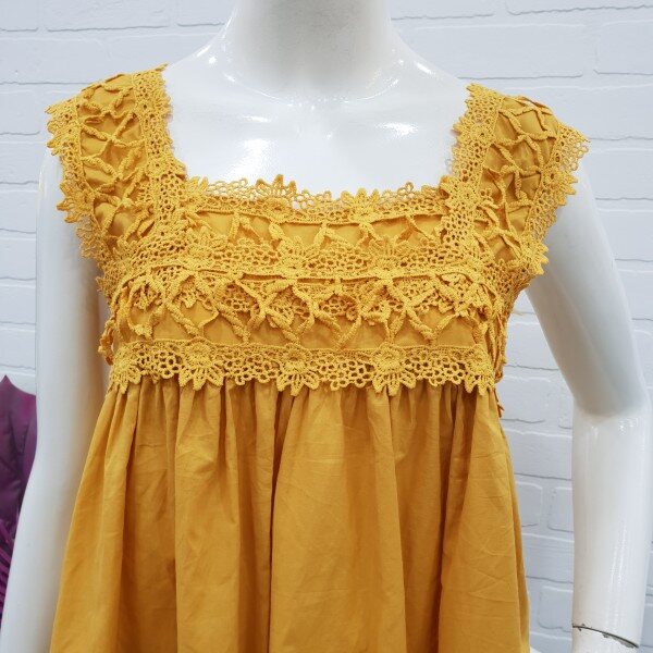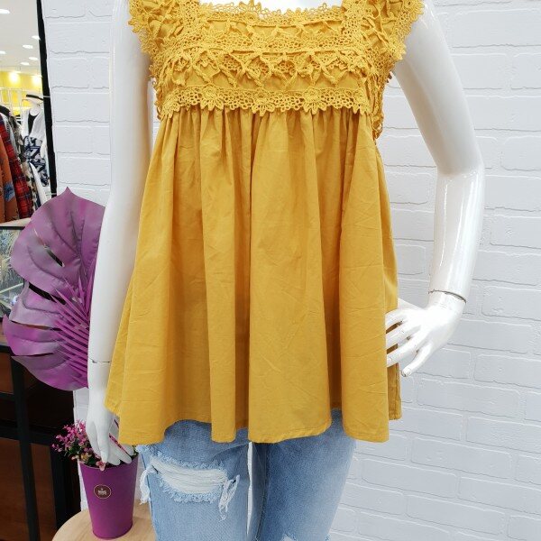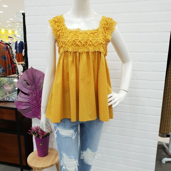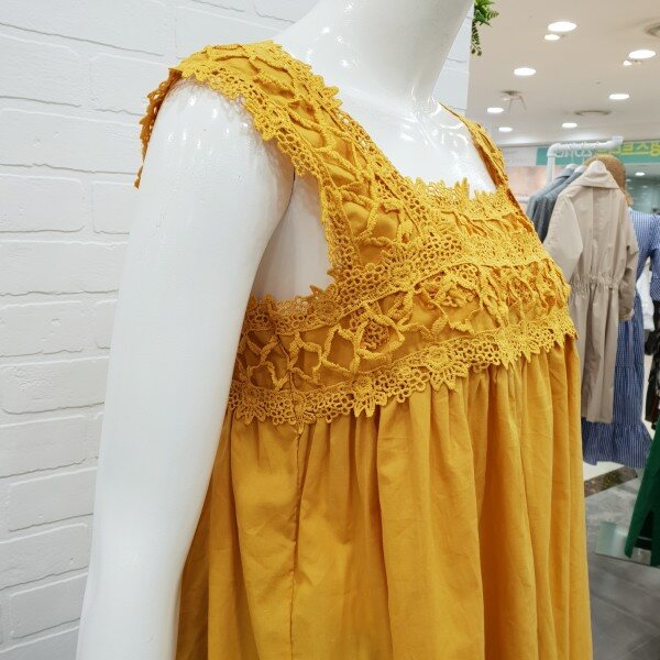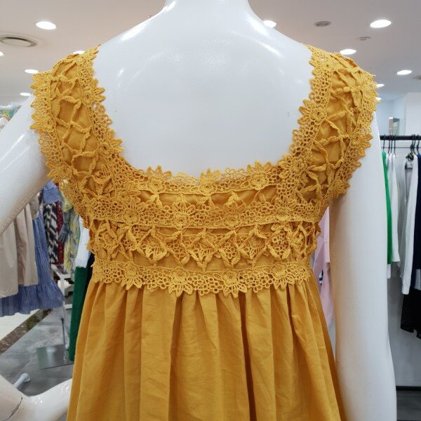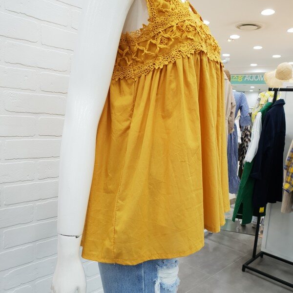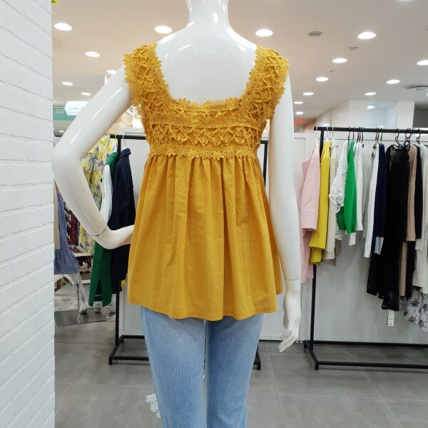 상큼 발랄한 레이스 나시티예요.시원한 아사소재와 가볍고 편한 착용감으로 인기가 좋아요.레이스로 여성스러움이 강조되고 가슴선에서 떨어지는 라인이 너무 예쁘답니다.스커트와 반바지와도 너무나도 예쁘게 잘어울리는 상큼발랄 스타일룩으로 좋아요.