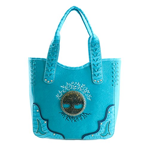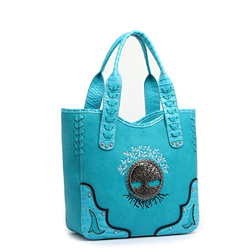 Western Handbag - Two Tone Tree of Life Embossed Concealed Carry Tote Bag