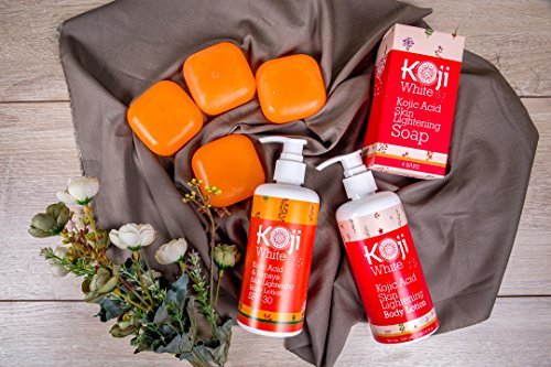 GET BACK THAT FLAWLESS, VIBRANT GLOW! Are you struggling with irritating sun spots, unsightly stretch marks, discoloration and freckles?Not anymore! Use Koji White Kojic acid soap daily to whiten your skin, remove dark spots and even out your skin tone naturally!