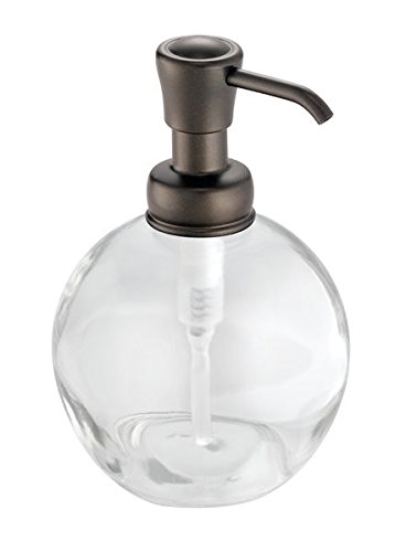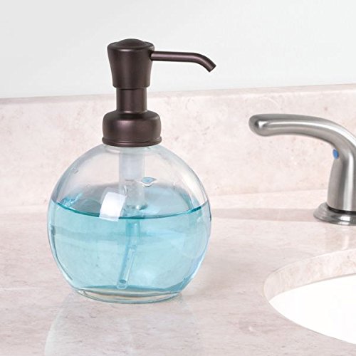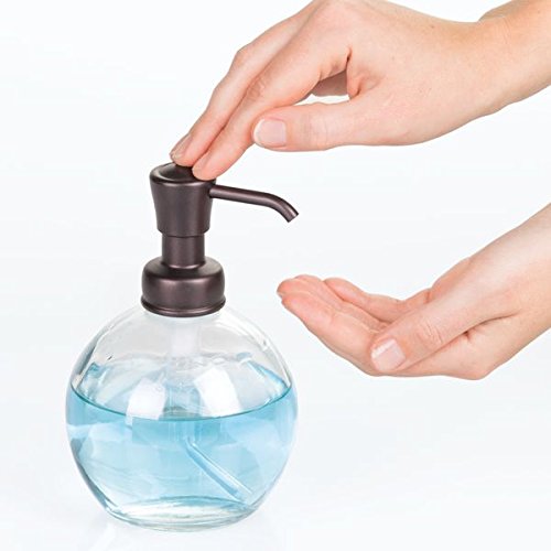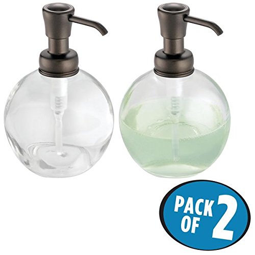 mDesign Round Glass Liquid Soap Dispenser Pumps for Bathroom Counter, Sink - Pack of 2, Clear/Bronze