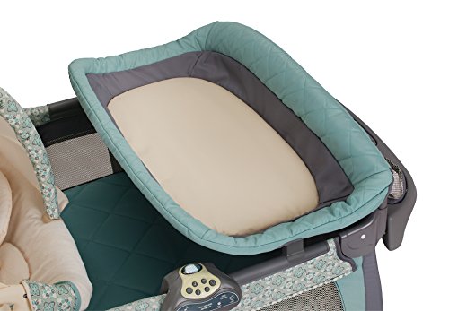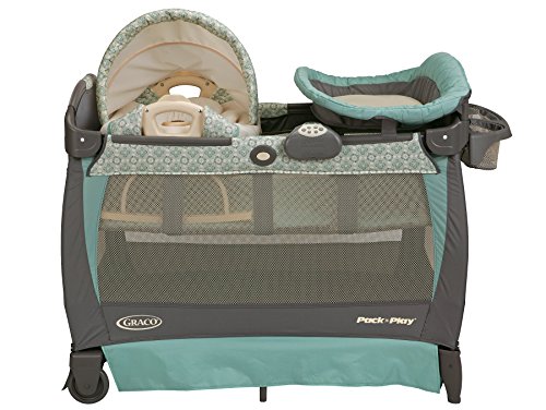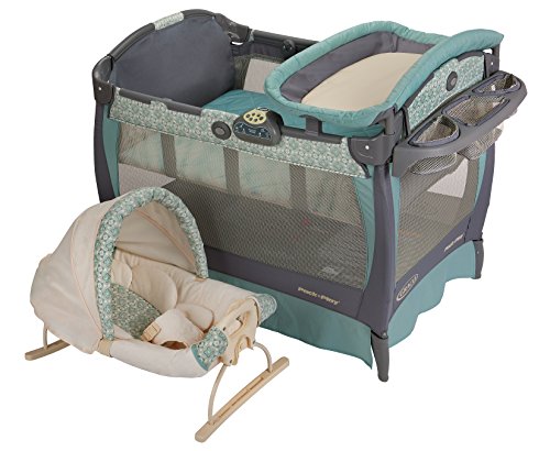 Graco's Pack 'n Play play yard with Cuddle Cove Rocking Seat, in Winslet, features a removable vibrating rocking seat that helps you bring baby with you