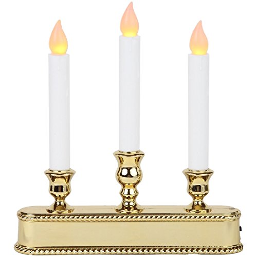 Lily's Home Battery Operated Flickering LED Triple Window Candle with Auto Sensor | Holiday Window Lights with Auto ON at Dusk and OFF at Dawn
