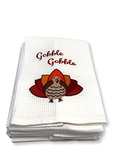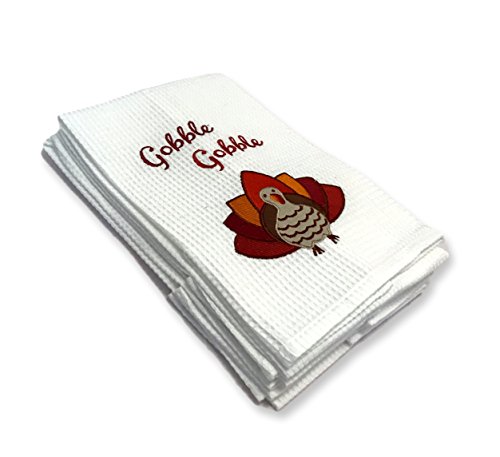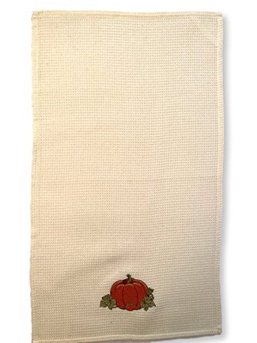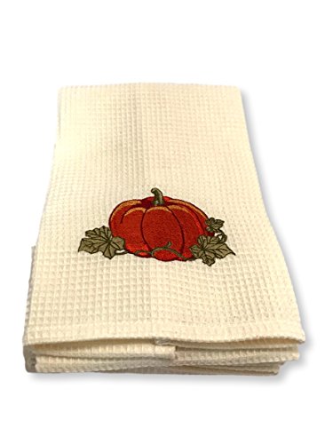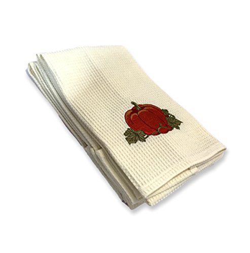 Embroidered Waffle Weave Thanksgiving Holiday Kitchen Towels Dish Cloth 4-Pack, 100% Cotton, Super Absorbent, 16 by 27 Inch - Modern Colorful Printed Dish Towels - Pumpkin Spice