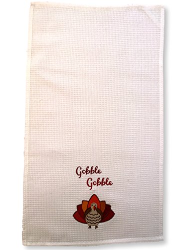 Kitchen Dish Cloth 100% Cotton Hand Towels, Super Absorbent, Colorful Printed Design Tea Towels with hanging loop, Set of 4 (Size 18"x 27") (Thanksgiving turkey)