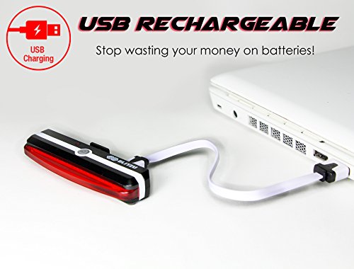 ✔ USB RECHARGEABLE REAR BICYCLE LIGHT - Stop Wasting Your Money and Never Buy Batteries Again. The Cyborg 168T bicycle rear light charges from your computer or any device with a USB port. Only takes 2 hours to fully charge. This Bicycle Tail Light has 6 modes: Low (6hrs run time), Mid (2hrs 15 mins run time), High (1hr 30 mins run time) , 50% Flashing (5hrs run time), 100% Flashing (3hrs run time), and Strobe (2hrs 30 mins run time).