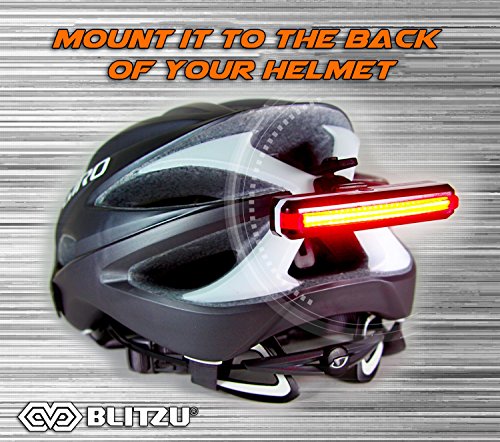 ✔ BE SEEN FROM BLOCKS AWAY, RIDE WITH CONFIDENCE - Introducing the ALL NEW Blitzu Cyborg 168T Bike Tail light. It features 50 micro-LED chips emits up to 168 Lumens. Simple to install - Mount this bike rear light anywhere you want in seconds, such as the handlebar, the seat post or anywhere on the frame. Mount the rear bike light on the back of your helmet and you have yourself a bike helmet light.