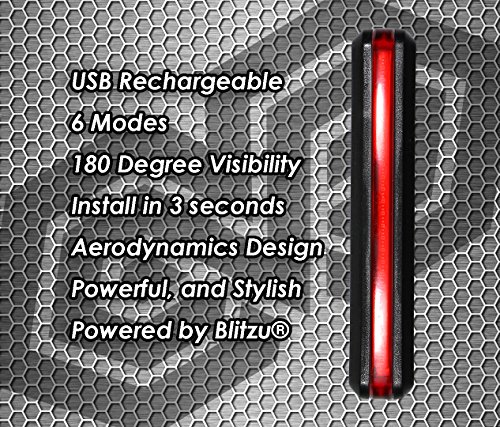 ULTRA BRIGHT Bike Light Blitzu Cyborg 168T USB Rechargeable Bicycle Tail Light. RED High Intensity Rear LED Accessories Fits on any Road Bikes, Helmets. Easy To install for Cycling Safety Flashlight